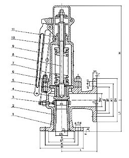 本閥門適用于工作溫度≤350℃的蒸汽、空氣等介質(zhì)的設(shè)備或管路上。作為超壓保護裝置。連接法蘭標(biāo)準(zhǔn)按JB/T-94的系列1。 |